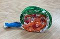 This one is so fun! I like that he has two different colored eyes and that his mouth look like an upside down pumpkin.