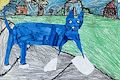Pete is a blue cat! It is pretty. I especially love the sun and houses in the background and the sidewalk that Pete is walking on. I always look forward to your artwork.