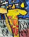 I really like the background colors on this giraffe drawing. The blue and green and the clouds and the sun. Thanks for sharing it!