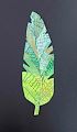 Owen, the green, yellow and tan colors you chose for your feather and the various patterned designs on each section are so eye-catching, especially against the black background! It got me wondering what kind of bird it was that lost that feather. From the colors you chose for your feather, I'm guessing it was a happy little song bird :)