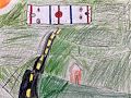 Owen, your drawing is so much fun! I can imagine driving on that hilly road then finally reaching the hockey rink and watching you play!!!!