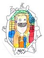 Hi Adam, You did a great job on this portrait! I love the designs that you made on the shirt and you did a great job coloring it, and I love the color - green of course! We are very proud of you Adam! Love, Mimi & Boppy