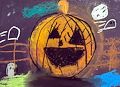 WOW!!! This is one of my favorite pieces of art that you created!! It's bright and colorful, yet looks a bit spooky - just like Halloween. The pumpkin looks so happy, but the little ghost on the bottom left looks sad. I especially love how you drew the eyes on the pumpkin!! I can't wait to talk with you about how you created this!! I love you!!