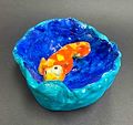 This is a cute fish in a bowl.