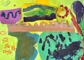 I love this painting. It reminds me of posters I’ve seen where you stare at the shapes and colors and they make a picture. When I stare at your painting I see a starfish! So cool! Love ya big time! Nana