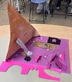 Ada this is SO creative! You used so many recyclable items together into a very cool piece of art! I like the purple background so you could see the white and wooden items show up on the page. The orange lids really pop too! Love it!