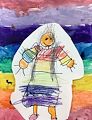 This is a really cute work of art. I love the outfit and the facial expression. I love it.