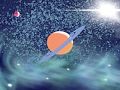 I love this planet painting! You made interesting color choices and the orange planet really pops against the background.