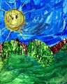 Ariel, I really love how you have made this picture so bright and cheerful! Your colors on the trees are so complimentary. And the sun is shining and so happy! I can’t wait for you to tell me what the assignment was for this piece. I look forward to seeing more of your artwork. I love you very much!
