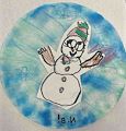 A very happy looking snow woman! Love the dappled background