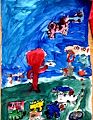 Great work Westbrook! The colors seem to leap off the page. The smaller figures are intriguing and make me want to know what they are! I am so proud of you and the uniqueness of your creativity. Keep up the great work! Love, Grandpa Ozzie