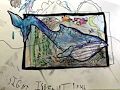 My sweet grandson, That is quite a big whale and he looks like he just ate a big bunch of krill. What I like about your whale is that his tale is sticking out of the picture frame and he is ready for a long swim, all the way from Alaska to Hawaii. He looks so alive with the beautiful algae around him. Enjoy your art classes. Love you, Anmaman