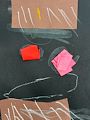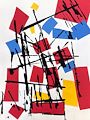 This piece is very striking! I love the use of all primary colors and the splatters of black paint!