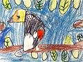 Hi Gwen, I love your toucan! The red and yellow of its feathers are pretty, and the leaves are so nicely drawn. Love, Grandpa
