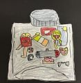 This is terrific - very creative! This shows a very effective use and understanding of how to make your drawing appear to be 3D! It looks like your character might walk right off the page. Well done! Love, Nana and Gung Gung