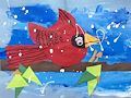 This is an adorable colorful Chameleon! You did a nice job drawing it and a wonderful job mixing colors with your crayons! Good job!