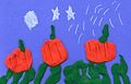 This is beautiful. Pumpkins in a pretty green patch with stars shining. Awesome job Carson. Nana and Papa love it. You do such a nice job.