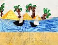 What a beautiful job. I like all the colors you used. The palm trees are perfect. The water is a pretty blue. And the two boats have their sails up. Great job. Love you. Nana