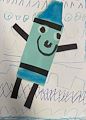 Super cute face on the blue crayon and very cool background! Great job!!
