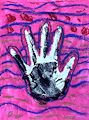 Dear Emmy, I love your black and white contrasting color handprint with the blue outline all around, very defined and the pretty red and blue surrounding background which lets the handprint stand out because of the colors you chose. Very nicely done!