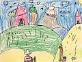 It looks like you are out hiking and exploring in this one. I like the pink house, the mountain and especially the llama! Love Grandma