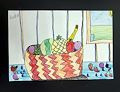 Wow-- what a delicious-looking fruit basket! Can't wait to take a bite! (PS: I love that you included a little bit of another painting in the background, how clever!)