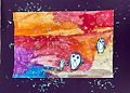 I love these penguins, especially the baby one, and what a colorful scene, wow!