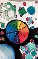 This piece is extremely cool. I love the shading and the dimension each shape has. Especially love the color wheel and the square with the many different sized squares and circles in it!