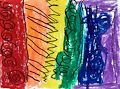 Max, your artwork brings me so much joy. The rainbow of colors you painted are beautiful. I especially love the different design patterns you drew within each color. I can’t wait to see your next piece of art. Love, Nana