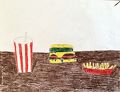 Mmm this one makes me hungry. I appreciate the use of bright, bold colors in this piece! I like all the detail on the hamburger too, I can see so many toppings!