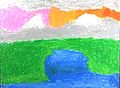 This reminds me of you, Eli. I like how you used blue in the top two triangles and patterns in the top three. It looks cartoony, which I also like.
