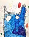 Hi Eden, I love your blue kitty's expression--it looks like it is soaking up the love from the hearts circled all around! Love, Grandma Dottie