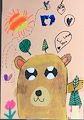 I love your hairy bear! It's so happy and cute. And the leaves, sun, hearts and flowers make this so happy. You did a beautiful job on this one - so colorful and fun!