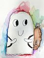 Dear Olivia, I like your BOO because it is smiling and has a great side-eye and happy smile. I also like the detailed whiskers on the cat and all the different colors. Your colors are nice and clean. Drawing and painting are fun! Love, Grammy