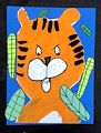 Hi Brec! What a great piece of tiger/cheetah artwork you made. This guy looks a little bit naughty. You did a beautiful job with the details on his face and I love the blue background with green leaves. Keep up the great work! Xoxx