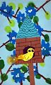 I love your yellow bird! I think it's a goldfinch in a beautiful garden of blue flowers.
