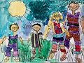 Dear Ada, I LOVE this family picture! It is so much fun that you have a family drawing to go with the one that Myles did when he was in kindergarten. The colors and details and stripes are awesome! Love, Nana
