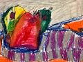 Yay first art from first grade! I love how you included so many different apple colors in your drawing! Alice and Ellie are really liking red apples right now!