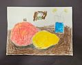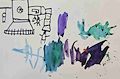 Per Declan, they are making paint buckets in this artwork. They spilled the paint all over! What an imagination!