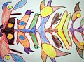 Trey, love the new artwork! There are so many things it could be when you use your imagination-- so far I can see a Chinese fish or bug, a new kind of dragonfly or butterfly, of course these would be with the black and yellow circles being it's head. I really like all the colors you used and the way you used them. Hope you are feeling better today. love, grandma sharon