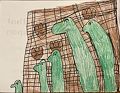 Hi Aaron! I love your dinosaurs! They look like they are marching together. And their eyebrows look like they are serious about their mission. It also looks like a dad, mom and kids. They know they need to stay together. I love you! Keep up the great work. Nana