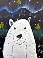 Hi Aaron. I love your polar bear. He looks like a friendly bear. The black bears by our cabin up north are hibernating right now and should wake up in the spring. It looks like very cold and icy mountains behind him. Too cold for me. See you soon. Love you lots. Nana