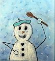 Eileen, I think it must help to be born in the wintertime because I think your winter pictures are your best! This snowman has a great face and a happy expression. Bobbo likes the beret! Is the snowman holding a microphone? He looks like he is about to sing Winter Wonderland! Nice job!