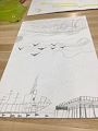 Jude! What a great drawing! The big ship, the dock, and a great Starry Night moon. Such nice detail with the fish and the birds...you did a fabulous job! Love it, and love you, Gram Elaine