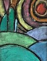 I think that the red is sun & bottom is ground. The colors around the sun feel so cozy to me. Thank you for posting the wonderful art, lovely Yuju!