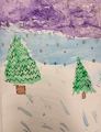 Love this one and the mix use of material, paint and pencil. Those trees look perfect for Christmas. ??