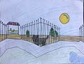 Wow. That is quite a haunted house. The colors are bright and fun. You really made a perfect Halloween sky. Love you.
