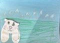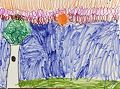 Emery, I love that you captured a sunset in this art! I think that your color choices for the top of the picture are so beautiful. The orange sun goes really well with the clouds. I wonder what kind of animals live in that hole in the tree? I think that a happy family of squirrels probably just sat down for their acorn dinner in their tree hole house.