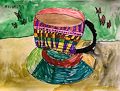 Great cup of cocoa. No marshmellows? The cup is beautiful and I love the butterflies. Terrific colors. Great job, Oliver!