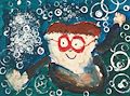 My goodness, I love this picture! The goggles are great and making them red to really stand out is excellent. But what I like best is the wonderful happy face the swimmer has. I like how the swimmer is taking a stroke- great placement of the arms. That swimmer is having a terrific time in all those bubbles. I want to jump in too! Keep up the great work, Oliver.